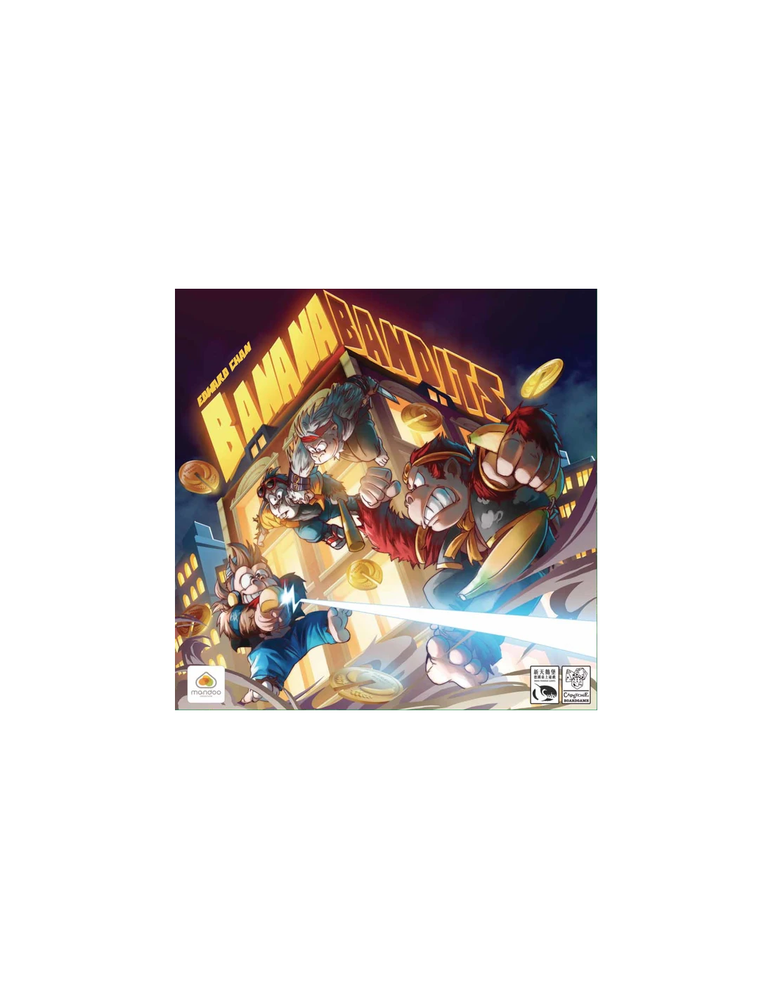 Banana Bandits is an exciting family game with a eye-catching 3D building. Each turn, the active player has three action points, and the player can choose any of these actions to execute: