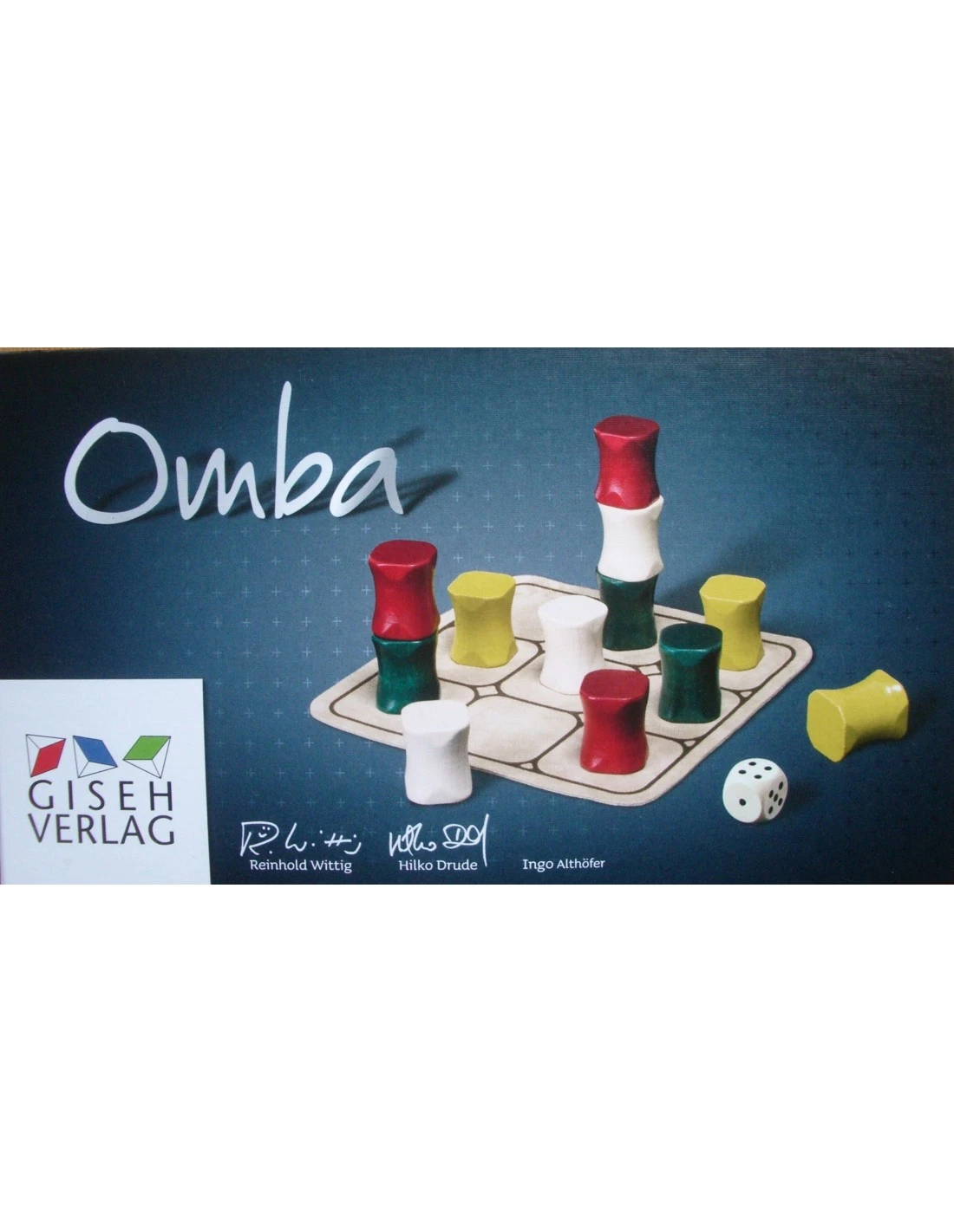 In the quick, spatial, tactical dice game Omba, players try to block one another on the tiny game pitch, which measures only 3×3 squares.