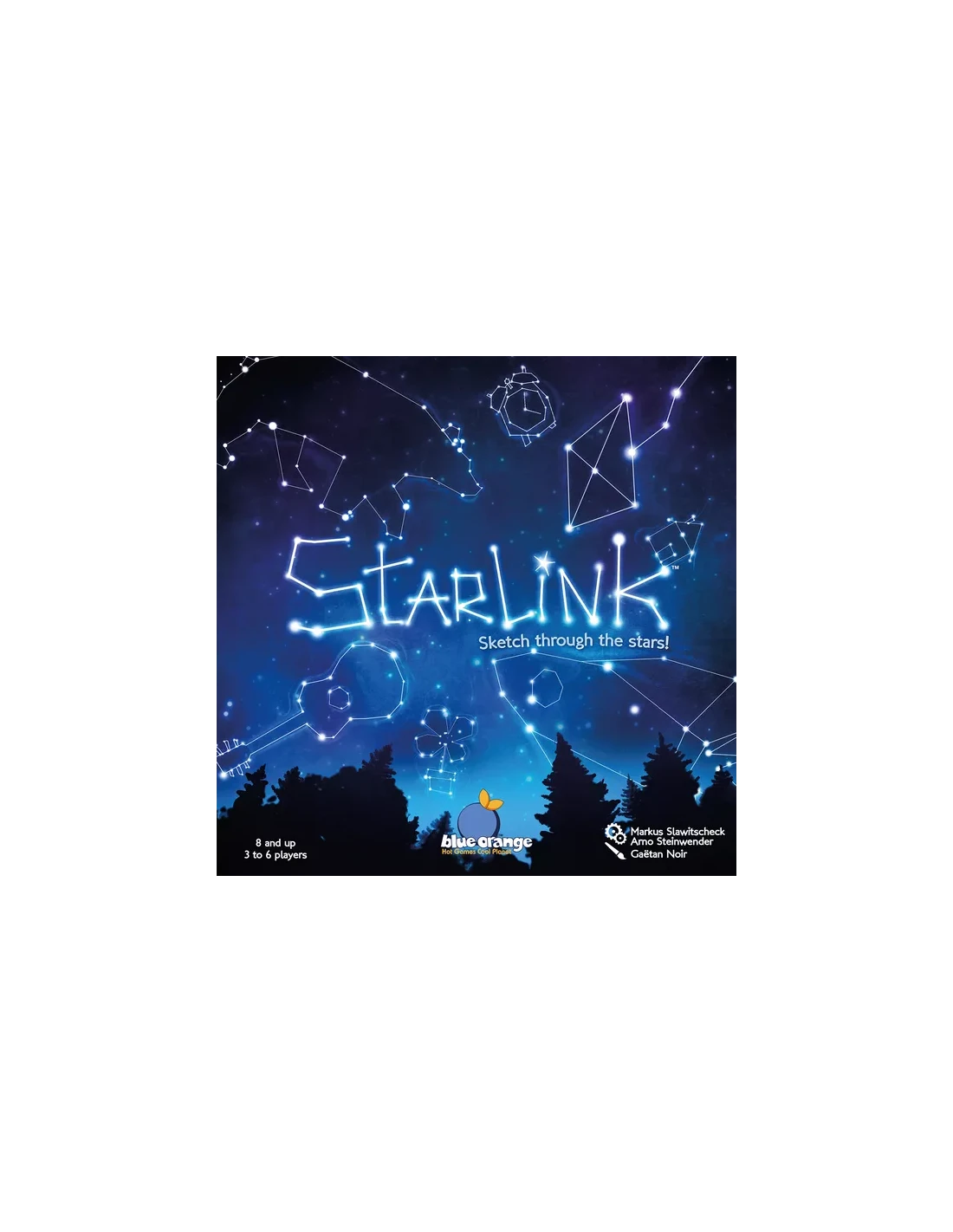 Starlink is a drawing party game that takes its inspiration from the constellations in the night sky. On your turn, you must try to represent a secret word by drawing straight lines between the stars on the board, and then hope that the other players can guess what you are illustrating.