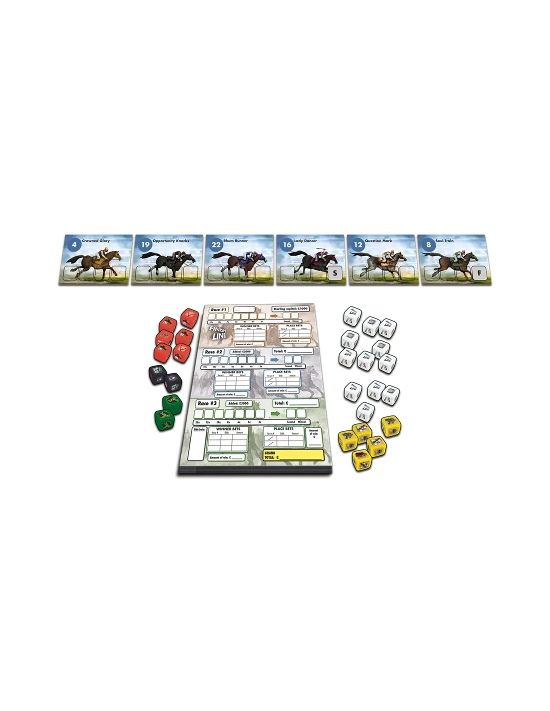 Some dice have horseshoes which, when selected, are used to move a horse (the roller chooses) up in the order. The rest of the sides show eleven (11) different sides which may be used to alter the value of horses, place a side bet, manipulate the order, and even disqualify a horse!