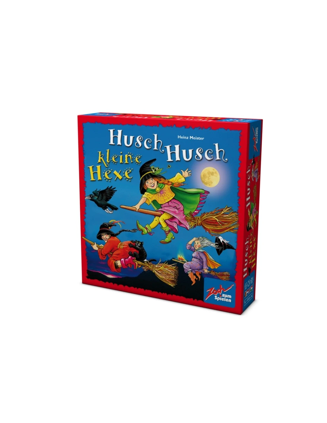 A children’s game in which five witch tokens in different colors are hidden under witches’ hats. On your turn, roll a die and pick up the hat that you think is hiding the witch of the corresponding color. If you are correct, roll the die again and repeat. If you are wrong your turn ends. The sixth side of the die shows an “exchange” symbol. If rolled, the player exchanges two witch hats on the board without revealing the hidden tokens and ends his turn.