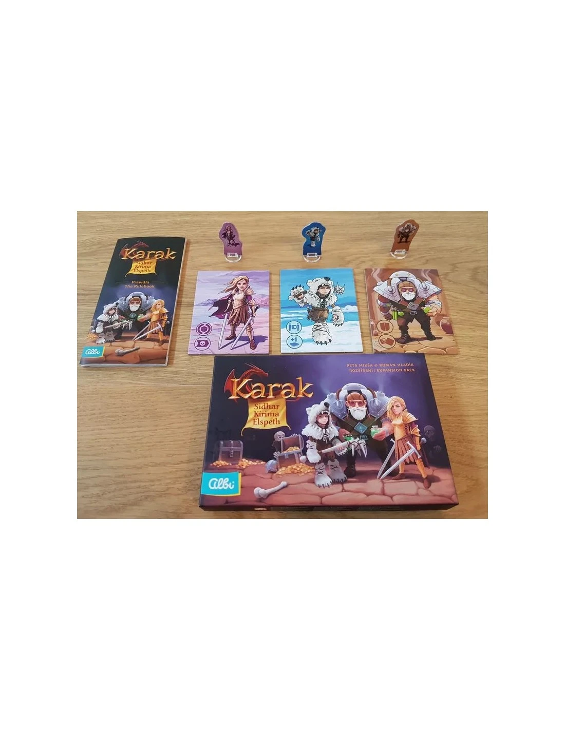 Three new heroes who venture into the depths of Karak, seeking gold and to destroy the infamous dragon. The small expansion consists of three boards for the alchemist Doctor Sidhar, the warrior princess Elspeth and the beast hunter Kirima. Three card board standees, plastic stands and an international instructions are inculded as well.