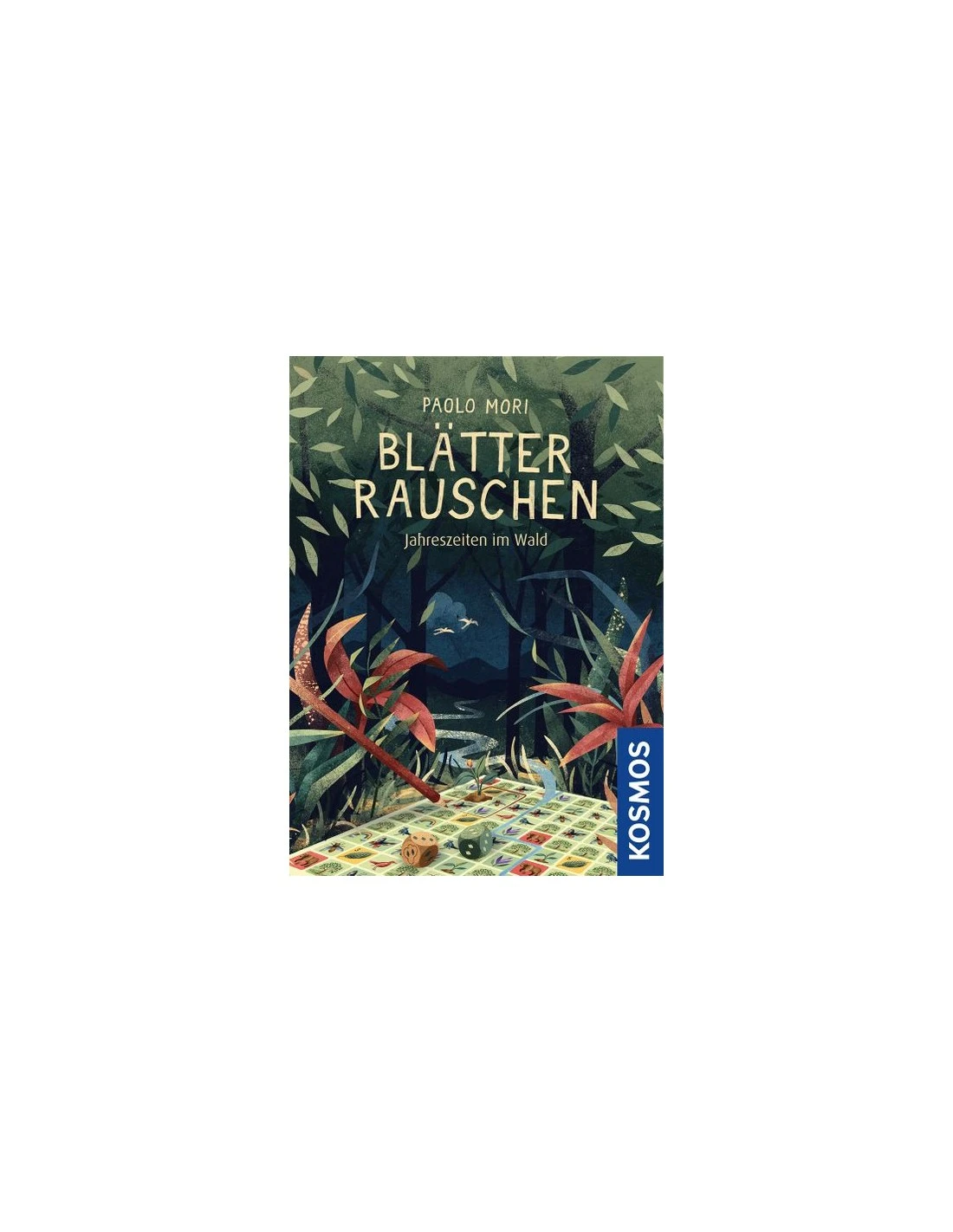 Blätterrauschen (“Rustling Leaves”) is a roll-and-write game, and for every season — spring, summer, autumn, and winter — there is a themed game sheet with different rules. The numbers on the dice reveal the side lengths of the area marked on the game sheet. In this area, a forest symbol is selected that is included in the scoring. Whoever collects the most points wins.