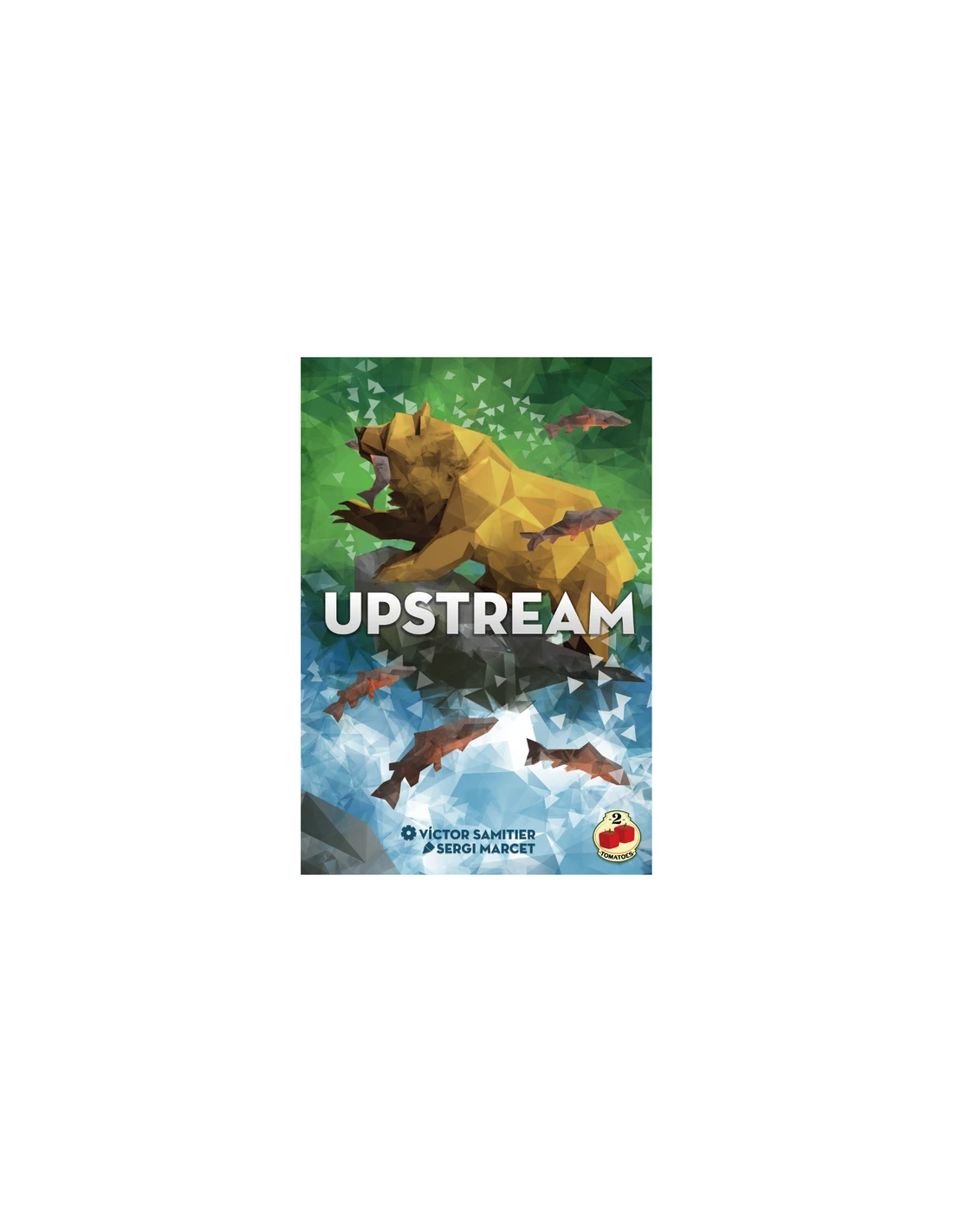 In Upstream, each player controls a bank of salmon swimming upstream to lay their eggs where they were born. During their journey, they will face hungry bears, fierce birds of prey, and patient fishermen, all of which they must avoid in order to survive. These are not the only hazards the salmon must face as each round of play the strength of the water flow will cause some pieces of the river to fall back, making it impossible for some fishes to make their way upstream.