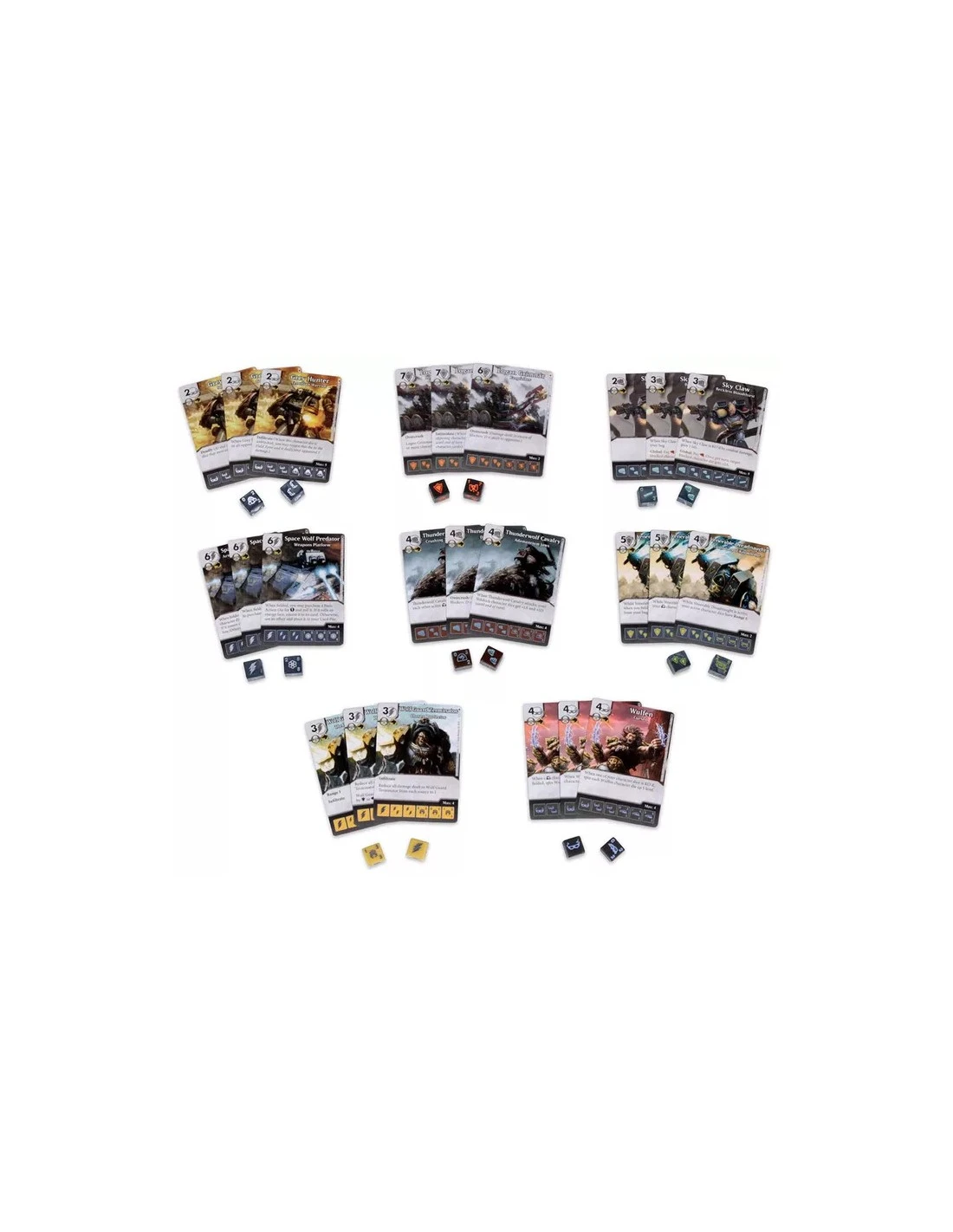 Set in the dark sci-fantasy world of Warhammer 40,000, Warhammer 40,000 Dice Masters allows players to build teams of iconic characters and warriors to battle it out for supremacy using custom dice and cards. Warhammer 40,000 Dice Masters uses the game system designed by Mike Elliott and Eric M. Lang for Dice Masters and is completely compatible with other games in the line. Four factions are available when the series first launches, and players can either build teams using a single faction or mix and match to create their own Dice Masters team.