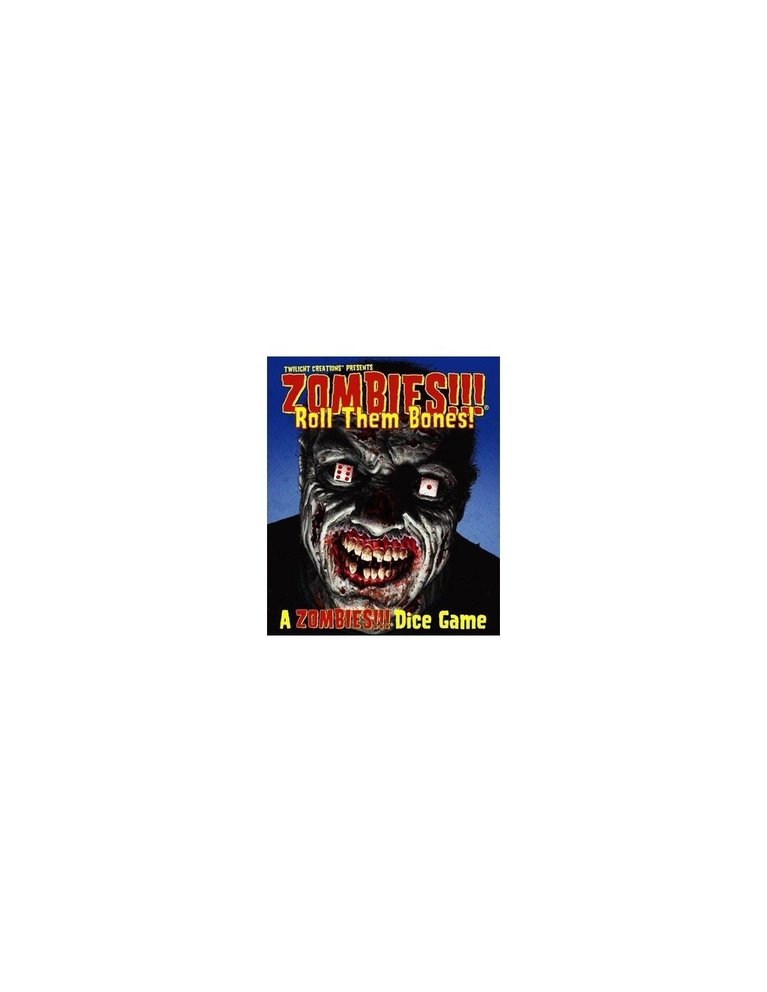 Zombies!!!: Roll Them Bones simulates the coming Zombie apocalypse in dice game form. Each player desperately tries to defeat all of the zombies in their path and be the first to grab the last seat on the helicopter…waiting sixteen blocks away!